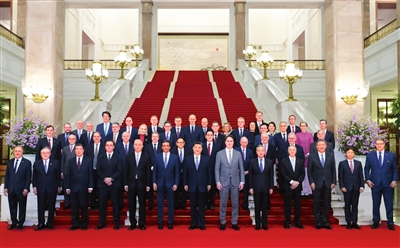 40余位外资企业全球董事长、首席执行官和商协会代表参加会见。美国联邦快递集团总裁芮思博、德国梅赛德斯-奔驰集团董事会主席康林松、法国赛诺菲集团首席执行官韩保罗、英国汇丰控股集团行政总裁艾桥智、日本日立制作所会长东原敏昭、韩国SK海力士社长郭鲁正、沙特阿美总裁纳瑟尔等先后发言。
