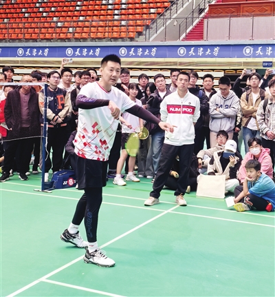 本报讯(记者 苏娅辉)昨天,羽毛球世界冠军公开课在天津大学卫津路校区土立方体育馆火热进行。本次公开课特邀世界冠军陈金到场,和师生们进行了一场高水平的羽毛球教学与互动体验。