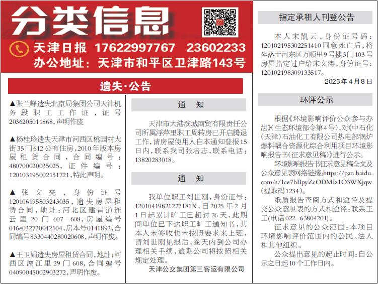集团总编室:022-23602716 集团办公室:022-23602888 广告处:022-81316697