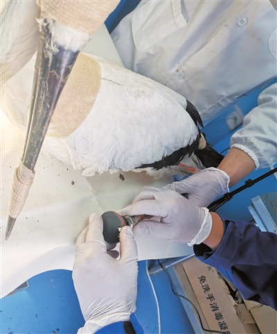 救护人员立即请兽医为它实施清创手术,控制感染,同时静脉补充营养,使其脱离生命危险。面对它失去左腿的现实,兽医判断:“若不能为这只东方白鹳安装假肢,它将永远无法重返野外。”
