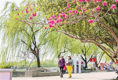 昨日,水上公园内,市民享受大风降温过后的晴好天气。