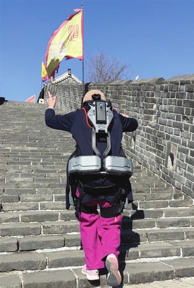 “穿上后,抬腿感觉有一股力量在帮忙往上拉,上台阶省了不少力,爬一个小时都不感觉累。”今年66岁的苏女士,趁着春暖花开约上三五好友来黄崖关赏花,患有膝关节退化的苏女士,医生建议日常不能爬山,来游玩本来计划在山下休息,没想到遇到了“登长城神器”,体验后感觉助力非常大。