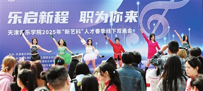 双选会聚焦国家战略和产业发展需求,40%的岗位是“艺术+”复合型岗位,如要求兼具舞台经验和项目运营能力的“文旅演艺策划”、青睐“艺术+管理”复合型人才的金融机构岗位等,影视制作、数字艺术、文化创意等新兴领域企业参会数量同比增加30%。“此次艺术人才招聘,我们对毕业生的具体专业没有太多限制,最看重的是应聘者在音乐方面的综合能力,招聘的岗位包括配乐创作、音乐设计、编曲制作以及音乐与技术结合的创新岗位等。”一家教育机构的招聘工作人员表示。在天津音乐学院现代音乐与戏剧学院表演专业大四学生王嘉韵看来,当前市场需要更多拥有跨学科能力的高质量应用型人才,她正在积极拓展专业技能边界,以更好适应就业市场。