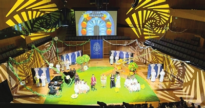 为把最具感染力的艺术体验带给观众,天津茱莉亚学院传统的音乐厅舞台“化身”沉浸式剧场,通过首次大规模、系统性使用的舞台灯光等硬件设备,打造出一个色彩缤纷的舞台,加之颇具特色的角色造型、双钢琴演奏及游戏互动等,为观众带来了一场丰富有趣的歌剧体验。观众席中,孩子们纷纷沉浸在精彩的表演和丰富的游戏互动之中。