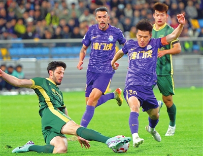 本报讯(记者 顾颖 摄影 孙震)昨天晚上,天津津门虎队在中超联赛第8轮比赛中,主场2:0战胜浙江队,积13分暂时排名第6位。必须承认,这是一场津门虎队和天津球迷都非常渴望的胜利,通过这场胜利,也进一步展现了天津足球在逆境中的坚韧与团结。