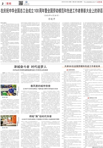 本报讯(记者 李杨)4月28日上午,庆祝中华全国总工会成立100周年暨全国劳动模范和先进工作者表彰大会在北京举行。我市66位全国劳动模范和先进工作者肩负海河儿女的奋斗豪情赴京受奖,其中,既有突破“卡脖子”技术的科研尖兵,也有扎根社区的民心守护者;既有勇攀技能高峰的“大国工匠”,也有在数字经济浪潮中奋楫争先的新就业形态劳动者,生动展现新时代天津劳动者踔厉奋发、勇毅前行的昂扬风貌。