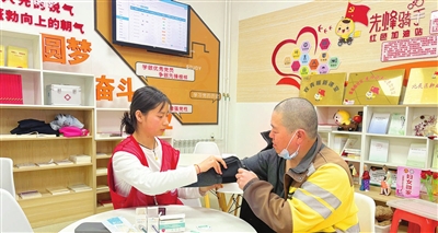 这座24小时户外劳动者智慧服务站还创新了基层治理模式,推动骑手从“过路客”转变为“社区合伙人”。驿站成为基层治理的新平台,推行“小哥积分制”,鼓励小哥参与志愿服务,积分可兑换理发券、美食套餐等奖励;30名骑手组成了“民情前哨”队伍,通过“移动探头”计划,及时上报沿途发现的安全隐患。“上次大风天,骑手小吴主动为独居老人买药。我们特意请志愿者将这一暖心场景绘制成团扇送给他。”安泰园社区党委书记李阳介绍。