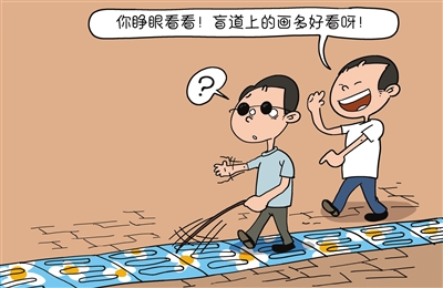近日,彩绘盲道引争议。有视障人士表示,色彩鲜艳的道路会影响他们对路况的判断,造成不便。让盲道真正贴合盲人需求,才是最重要的。