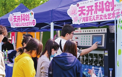 津城四月,海棠灼灼。在津南区海棠街道的绿动BOX活力街区,一场别具一格的活动将科创元素融入日常生活场景,给前来游玩的人们带来了独特体验。