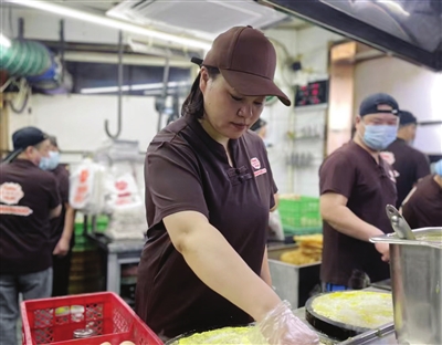 “妹子,还是老样子,来10套,工友们吃完好开工!”见到夜车司机张师傅,王华丽赶紧招呼着:“好嘞,我给您装到保温袋里。放假这几天活多,您多注意身体!”