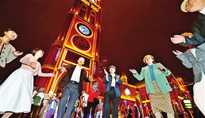 19时,悠扬钟声划破夜空,天津的“磁”爵士乐队以激昂的爵士鼓点叩响音乐之门,瞬间点燃现场气氛。爵士歌手用富有感染力的嗓音,与乐队默契配合,重新演绎多首经典爵士曲目,欢乐与热情交织的旋律,将爵士乐的自由与浪漫展现得淋漓尽致。更令人惊喜的是,乐队大胆创新,在《让我们荡起双桨》《鸿雁》《送别》等经典音乐作品中融入爵士元素,让东西方音乐文化在碰撞中焕发全新生命力,赢得阵阵喝彩。乐队歌手姜心韵表示:“我们希望通过这次演出,把爵士乐分享给更多喜爱音乐的朋友们。”