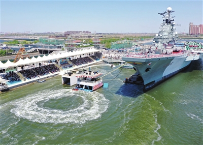“五一”假期,泰达航母主题公园焕新迎客。新升级的五甲区域开放,五甲登舰大厅增设四面环绕式大屏、鱼雷序厅,循环展示“航母编队”,为游客创建沉浸式视听场景,打造军事文旅新标杆。