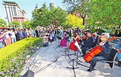 演出结束后,来自上海的游客李梦感叹道:“随着交响乐的响起,我瞬间感觉逛街都变得高雅起来了,然后跟着音乐打卡不同的地标建筑,感受天津这座城市独有的气质和格调,真是既时髦又有趣。”