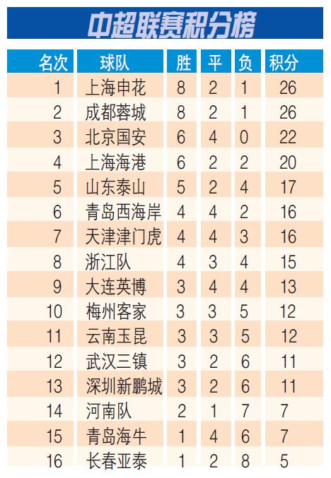中超联赛第11轮昨天进行了最后两场比赛,梅州客家队主场1:3不敌上海申花队,深圳新鹏城队客场0:0战平青岛西海岸队。