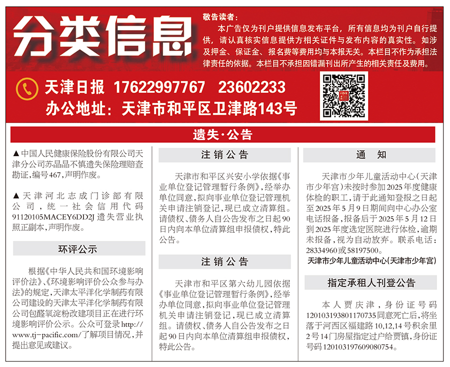 集团总编室:022-23602716 集团办公室:022-23602888 广告处:022-81316697