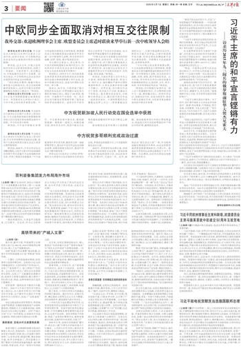 习近平同欧洲理事会主席科斯塔、欧盟委员会 主席冯德莱恩就中欧建交50周年互致贺电
