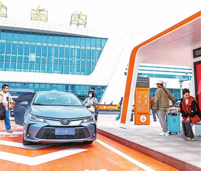 2023年,天津南站网约车临时停靠点初建成,成为天津“三站一场”第一个为网约车提供停靠点的站区;2024年,天津南站在站前广场新建落客通道,新增3条车道;起初按最多集聚1000人设计,如今日均客流量约3万人次,高峰日客流量7万余人次;2025年,网约车候车区再度增加了泊位区,候车数量扩容。