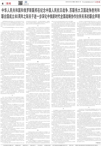 中华人民共和国和俄罗斯联邦在纪念中国人民抗日战争、苏联伟大卫国战争胜利和联合国成立80周年之际关于进一步深化中俄新时代全面战略协作伙伴关系的联合声明