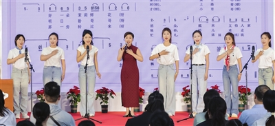 在民歌赏读环节,男高音独唱演员赵天刃、天津师范大学音乐与影视学院声乐系教师刘慧慧接连演绎了《画扇面》《莲花落》《十朵花》等天津民歌,让听众在乡音曲调中真切触摸到城市记忆的温度,感受到天津民歌在传承与创新中展现出的韧性与活力。