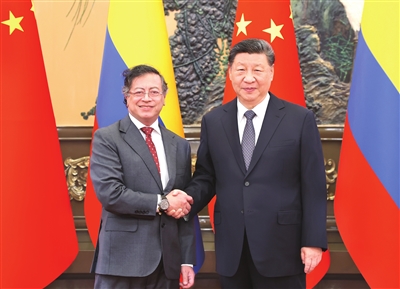 习近平指出,哥伦比亚是拉美重要国家,中方一向从战略高度和长远角度看待发展两国关系。今年是中哥建交45周年。站在新的历史起点上,中方愿同哥方共同努力,推动两国战略伙伴关系取得更大发展,更好造福两国人民。双方要巩固政治互信,加强战略沟通,把牢双边关系发展方向。要以哥伦比亚正式加入高质量共建“一带一路”大家庭为契机,推动两国合作提质升级。中方愿进口更多哥伦比亚优质产品,支持中国企业赴哥投资兴业,参与基础设施建设。双方可进一步拓展风能、新能源汽车、数字经济、人工智能等新兴领域合作,共同实现绿色低碳转型。要办好建交45周年庆祝活动,加强教育、文化、旅游等领域合作,密切人文交流,夯实两国友好民意基础。