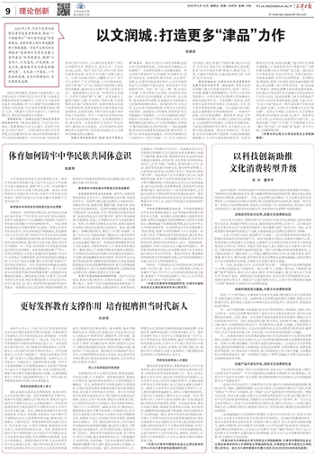 阔步在强国建设、民族复兴的新征程上,我们要认真学习贯彻习近平文化思想,以推进京津冀协同发展为战略牵引,实现文化与城市相互滋养、相互赋能,在“以文润城”和京津冀协同发展的“双向奔赴”中打造更多熠熠生辉的“津品”力作,不断提升天津文化感召力、天津形象塑造力,更好担负起新的文化使命。