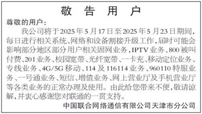 天津日报所有作品,版权均属于天津海河传媒中心,受《中华人民共和国著作权法》的保护。所有关于天津日报内容产品的数字化应用,包括但不限于稿件签约、网络发布、转稿等业务,均需与天津海河传媒中心商谈,与天津海河传媒中心有互换稿件协议的网站,在转载数字报纸稿件时注明“来源-天津海河传媒中心天津日报”和作者姓名,未与天津海河传媒中心有协议的网站,谢绝转稿,违者必究。