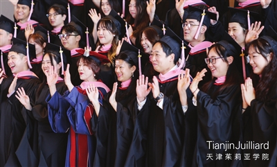 本报讯(记者 万红)昨天,在《威仪堂堂进行曲》激昂的铜管乐曲声中,天津茱莉亚学院·天津音乐学院茱莉亚研究院(以下简称天津茱莉亚)第四届硕士研究生毕业典礼拉开帷幕。经过两年的学习生活,来自中国、英国、塞尔维亚、乌兹别克斯坦等9个国家和地区的45名研究生顺利毕业,成功获得了纽约茱莉亚学院的硕士学位。作为我国首个颁发美国认证音乐硕士学位的艺术机构,十多年前播下的合作办学“种子”,如今已在海河岸边结出累累硕果,架起了一座沟通中外文化的音乐之桥。