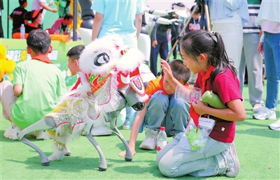 活动现场,绿地音乐会率先点燃热情,多所院校的学生们带来了精彩表演。游园会同样热闹非凡,20个展位有序排列,集中展示了津南区农文商旅特色产品、非遗手作以及海教园院校文创产品等。机器人、大黄蜂等科技装置前人头攒动,吸引众多游客打卡互动,科技与文旅的碰撞,带来了别样乐趣。
