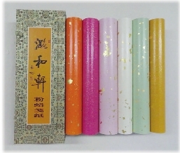 王敬涛说:“我是家里最小的孩子,排行老七。那时候我就很喜欢我们家的纸,色彩鲜艳,颜色靓丽。”那时候彩纸少,粉蜡笺有一层粉有一层蜡,手感光滑细腻,“上面还洒了金箔,大点儿的叫‘雨雪金’,小点儿的叫‘鱼子金’,或是绘制各种传统吉祥图案,成为书法用纸的上品,粉蜡笺在当时就非常贵重。”