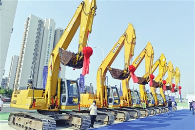 上午10时,机器轰鸣声中,山姆东丽店项目桩基施工启动。