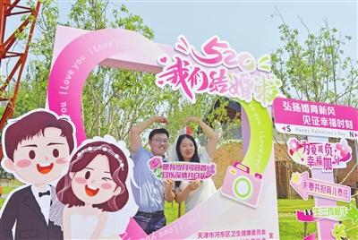 图为本市河东区在津一·PARK举办“为爱奔赴,情定圆满”集体颁证仪式,新人们许下幸福承诺。