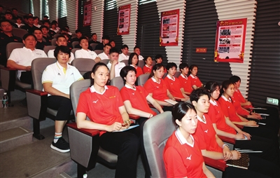 会上,市体育局相关部门负责人传达了《体育总局排球中心关于开展“大力弘扬女排精神,全面提振排球行风”专项活动的通知》。在“女排精神传承”专题观影环节,与会人员集体观看了《国家记忆之漳州基地》纪录片与天津女排奋斗历程专题片《王朝奠基》、《王朝初起》。里约奥运会冠军魏秋月、北京奥运会季军李娟分享了她们对女排精神的理解,天津男排队长毛天一、天津青年女排主教练刘仁德、市体校排球项目运动员牛思迪进行了交流发言。天津市体育局副局长、奥运冠军李珊以“学女排精神 树行业正风”为题,对大力弘扬中国女排精神进行了宣讲,对全面提振排球行风提出了要求。