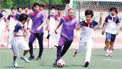 昨天,天津津门虎队的部分球员和工作人员代表,来到天津环湖中学,参加“放飞足球梦,助力津门虎”共建活动。