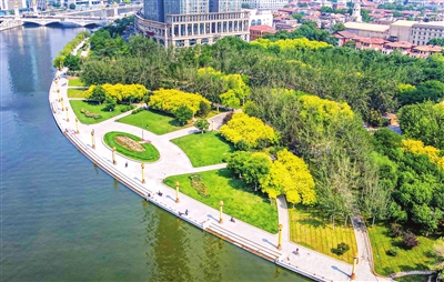 日前,河北区海河中心广场公园提升改造完成,为市民提供了舒适的游园环境。 记者 吴迪 摄