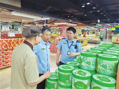 河东区市场监管局执法人员深入商业综合体、大型商超等场所开展食品安全检查。