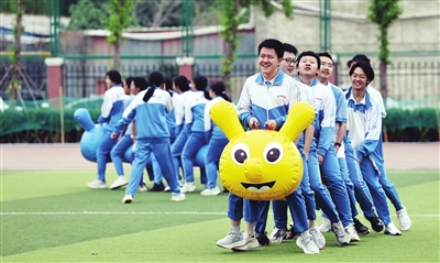 高考在即,为帮助高三学子释放压力、凝聚信心、激发潜能,近日,天津中学组织开展了“青春聚力·赋能冲刺——高三考前团体素质拓展”,通过团队游戏活动舒缓高三学生压力。 记者 刘欣 摄
