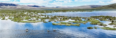 青海省玉树藏族自治州玉树市境内的隆宝滩湿地位于长江源头地区,这里水草丰美,是候鸟迁徙路线上的关键驿站与繁殖地。今年五月监测显示,当地吸引了包括斑头雁、黑颈鹤在内的37种鸟类在此栖息繁衍,斑头雁种群规模达5626只,幼鸟已随亲鸟蹒跚学步;珍稀的黑颈鹤也观测到94只,其中21对正辛勤抱窝,孕育着新的生命。 本组图片 新华社发