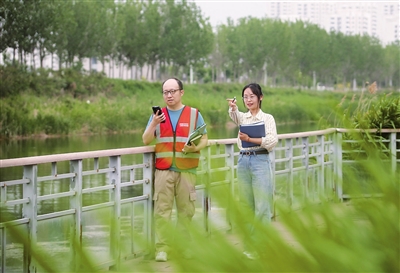 周公祠与马厂减河毗邻,共同见证了稻作文化改变地貌和生态的历史成就。马厂减河津南区段全长共计28.85千米。对周公祠进行复查时,队员们围绕建筑物步行测量打点;对马厂减河进行复查时,队员们则采取驱车沿河实地调查的方法,每隔一段距离就携带RTK设备下车打点测量,同时使用无人机进行拍摄,留存河道资料。