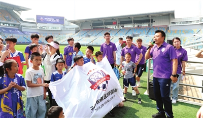 此次旅程,石勇、马云岭等天津足球名宿陪同孩子们沉浸式体验了泰达足球场竞赛核心区:在《公平竞赛曲》中,感受中超联赛开场前球员们的入场仪式;在主队休息室畅想未来自己可能成为这里真正的一员;在新闻发布厅以互动的形式了解天津足球多元化的历史……天津足球底蕴深厚、薪火相传,一座球场本身就是很多历史片段与故事的无声见证。