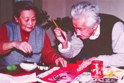 父母健在时,经常一起赏析诗词,母亲毛淑仁或读或抄,父亲周汝昌或书或释。记得2002年的春天,每到晚间,父亲即请母亲帮忙“做书童”,询问母亲写些什么词句好。母亲提议:“还是你的本行本业,就写题红楼的诗,岂不比别的更有意思?”这话触动了父亲的情怀,一时兴起,就答道:“好,你念一个红楼人名,我就题一首七言绝句,即席即兴,口占信笔,不打草,不停顿,不苦思冥索,不敷衍凑句,不引用自己原来的诗句……试试才思还能如昔时的‘倚马立成’否?”就这样,他们开始了这个“作业”计划。成果就是后来出版的《诗红墨翠(周汝昌咏红手迹)》书法集,收录了母亲亲定、父亲手书的120多幅诗词手迹。