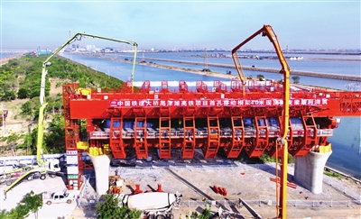 近日,由中铁建大桥局承建的津潍高铁项目首次采用移动模架施工完成水上连续梁首联浇筑。采用移动模架施工较传统架梁模式增加了施工稳定性,同时可以有效降低水上施工的风险,加快施工进度。