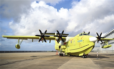 6月11日,在珠海中航通飞华南飞机工业有限公司,现场展示的批量生产的首架AG600飞机。