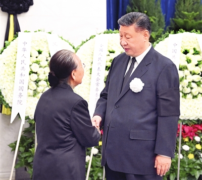 上午9时30分许,习近平、李强、赵乐际、王沪宁、蔡奇、丁薛祥、李希等,在哀乐声中缓步来到热地同志的遗体前肃立默哀,向热地同志的遗体三鞠躬,并与热地同志亲属一一握手,表示慰问。