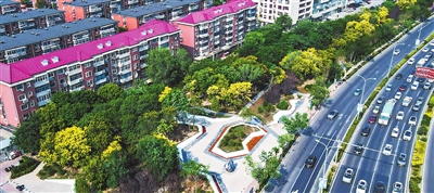 近日,位于西青区的复康路口袋公园升级改造完成,该公园南达复康路,西临碧欣路,占地约11800平方米,以“转角的幸福”为主题,打造集生态、休闲、文化于一体的城市公共空间。