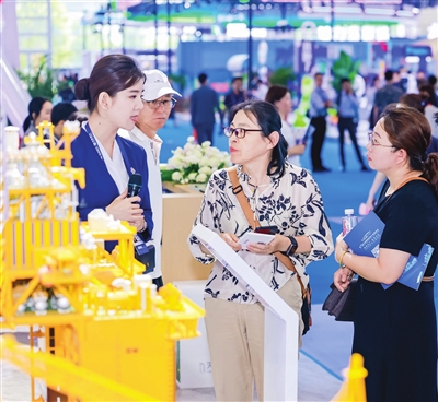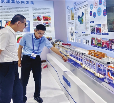 世界一流疏浚船舶——天津航道局“天鲲号”、海洋石油工程股份有限公司带来的“深海一号”能源站、国内装备制造领域龙头企业宇通重装推出的70吨级纯电动港口轮胎起重机、中铁建大桥局展示的智能装备“沧龙号”搬梁机,还有中国石化智能工厂沙盘、天津渤海化工集团“两化搬迁”项目沙盘、天津南港工业区海水淡化及综合利用一体化项目沙盘……一个个沙盘、模型,让观展观众直呼“看得过瘾”。