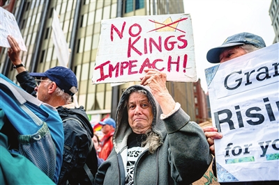 据报道,在美国纽约、洛杉矶、丹佛、芝加哥、奥斯汀等各大城市和广大的农村地区,14日举行了约2000场抗议活动。数百万人参加了抗议。按照路透社说法,这是特朗普今年1月再次担任总统以来,美国发生的最大规模抗议示威活动。一些民众手举颠倒的美国国旗,以此表达对政府的不满。