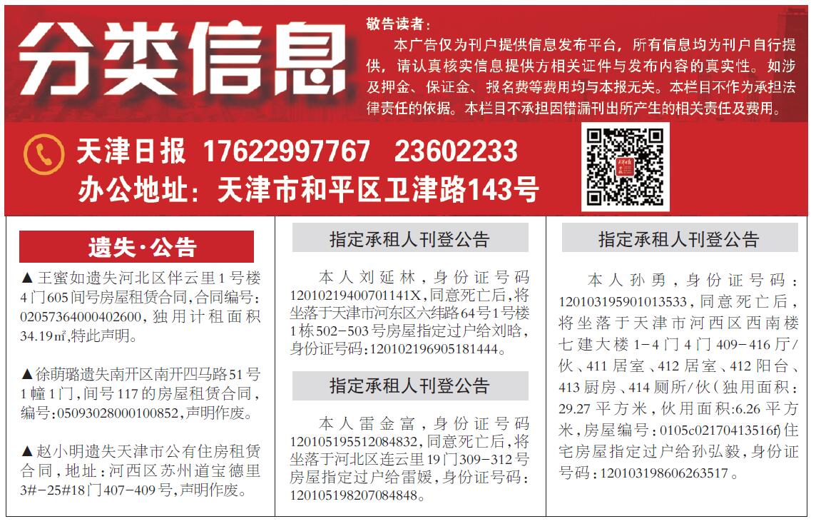 平媒总编室:022-23602716 中心办公室:022-23602888 海河传媒广告有限公司:022-23602233