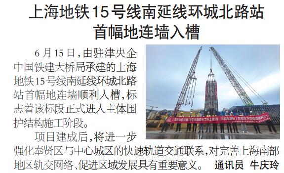 上海地铁15号线南延线环城北路站 首幅地连墙入槽(图)