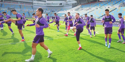 本报讯(记者 顾颖 摄影 崔跃勇)昨天天津津门虎队继续在上海厚湃尔体育公园足球场备战,今天傍晚,球队前往上海体育场适应场地。明天19时,津门虎队将在中超联赛第15轮比赛中客场挑战上海申花队。