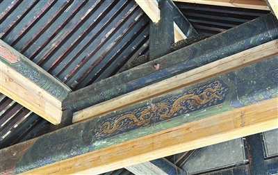 紫竹禅林寺作为市级文物保护单位,究竟有何独特魅力呢?踏入寺院正殿,沙福山指着头顶木梁上的彩画对记者说:“紫竹禅林寺最宝贵的‘财富’不在殿外,而在殿内,尤其是正殿供梁上沥粉贴金坐龙的图案,令前来勘测的专家们眼前一亮。”